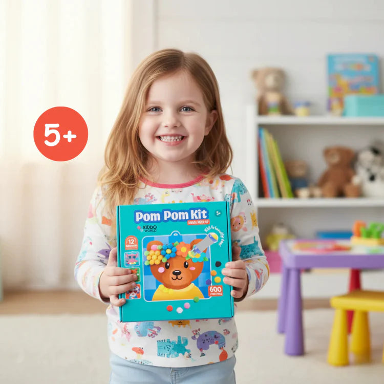 Ustvarjalno-izobraževalni komplet združuje senzorični Pom Pom Kit za izdelavo mehkih figuric in piši-briši zvezek Curious Child Colours za prve pisalne veščine – vse v enem paketu, ki spodbuja domišljijo, koncentracijo in fino motoriko.
