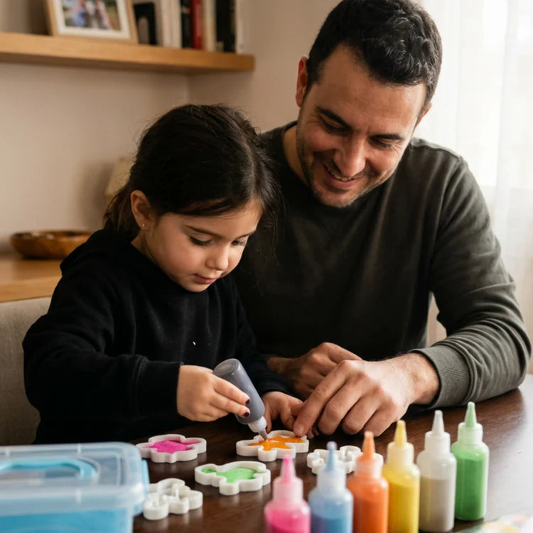 Ta ustvarjalni komplet otrokom prinaša ure nepozabne igre, ki združujejo učenje, ustvarjalnost in zabavo – popolna alternativa elektronskim napravam. Naj bo to rojstnodnevna zabava, družinski popoldan ali deževen dan doma, vsak trenutek postane priložnost za ustvarjanje in raziskovanje.