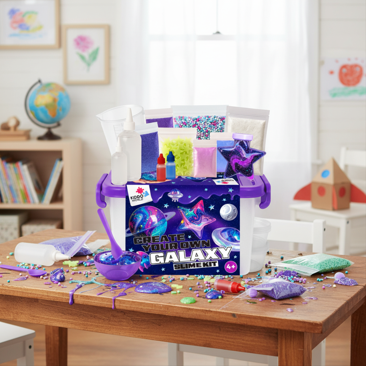 Galaxy Slime Kit ni le igrača – otroci obožujejo mešanje barv, bleščic in čarov ter ustvarjanje svoje galaktične sluzi, hkrati pa razvijajo domišljijo, fino motoriko in senzorične spretnosti.