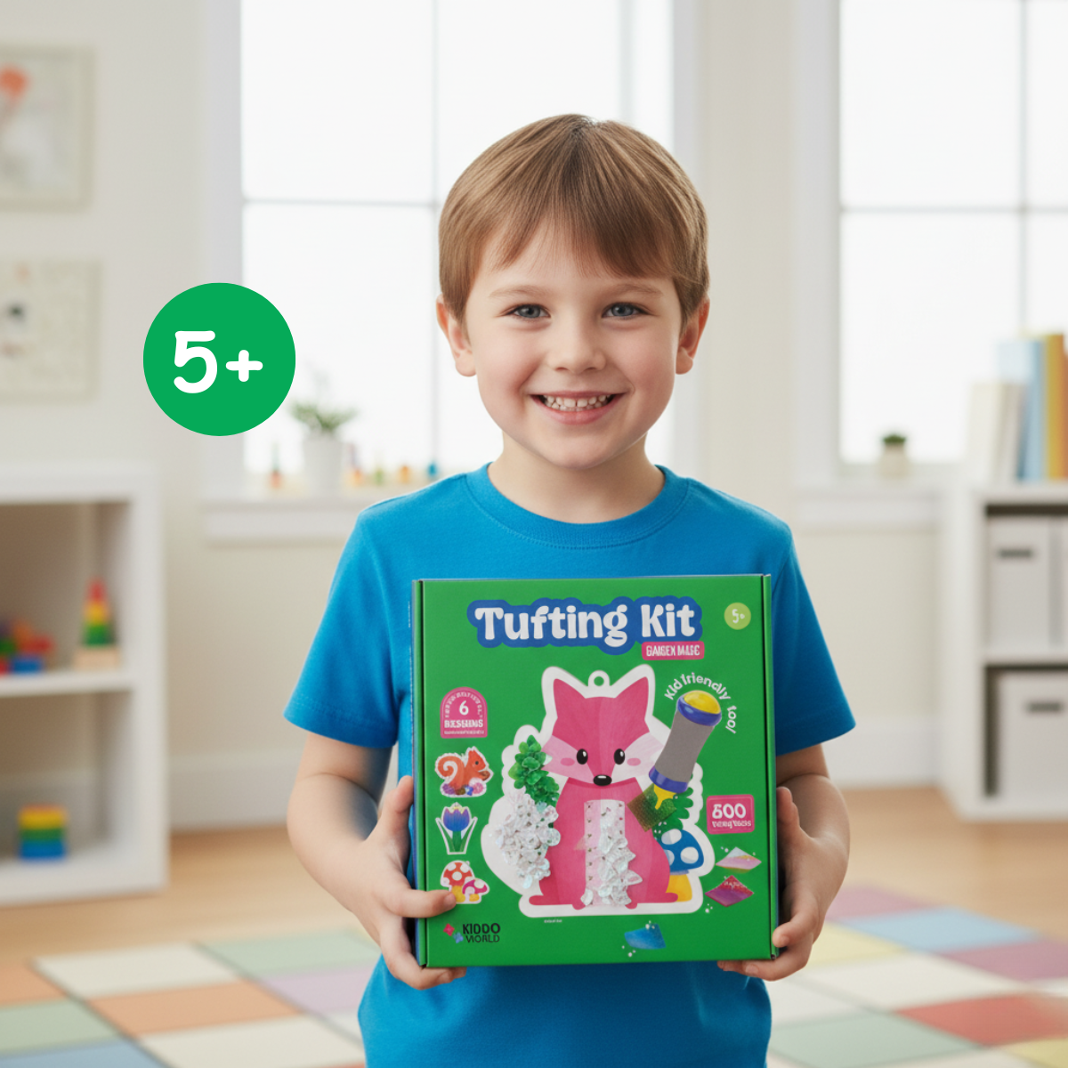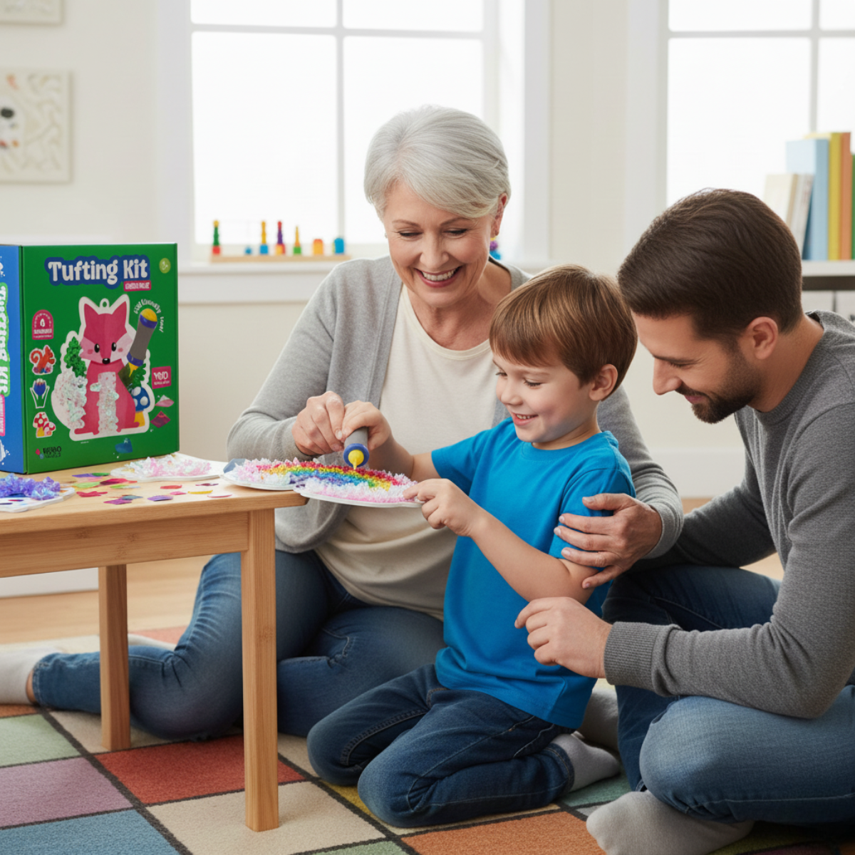 Obožujem Tufting Kit! Komplet je zelo zabaven, pripomoček za potiskanje lističev je super za majhne roke, navodila so jasna in enostavna. Otroci so uživali pri ustvarjanju barvitih risbic brez nereda – popolna kombinacija senzorične igre in učenja!